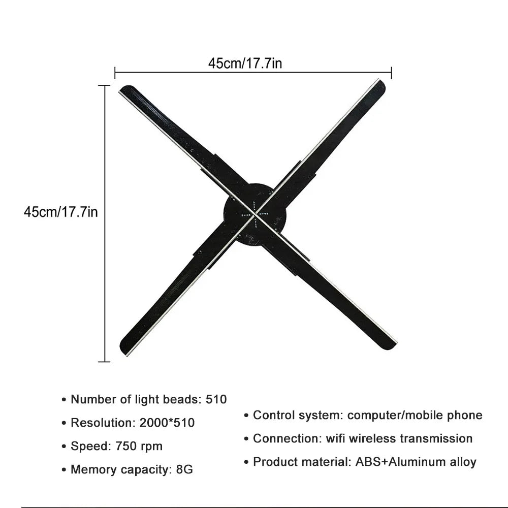 UNiPROS 3D Holographic Fan Screen Stereoscopic Display Suspended Project Lamp 42cm Suspended Imaging Advert Machine