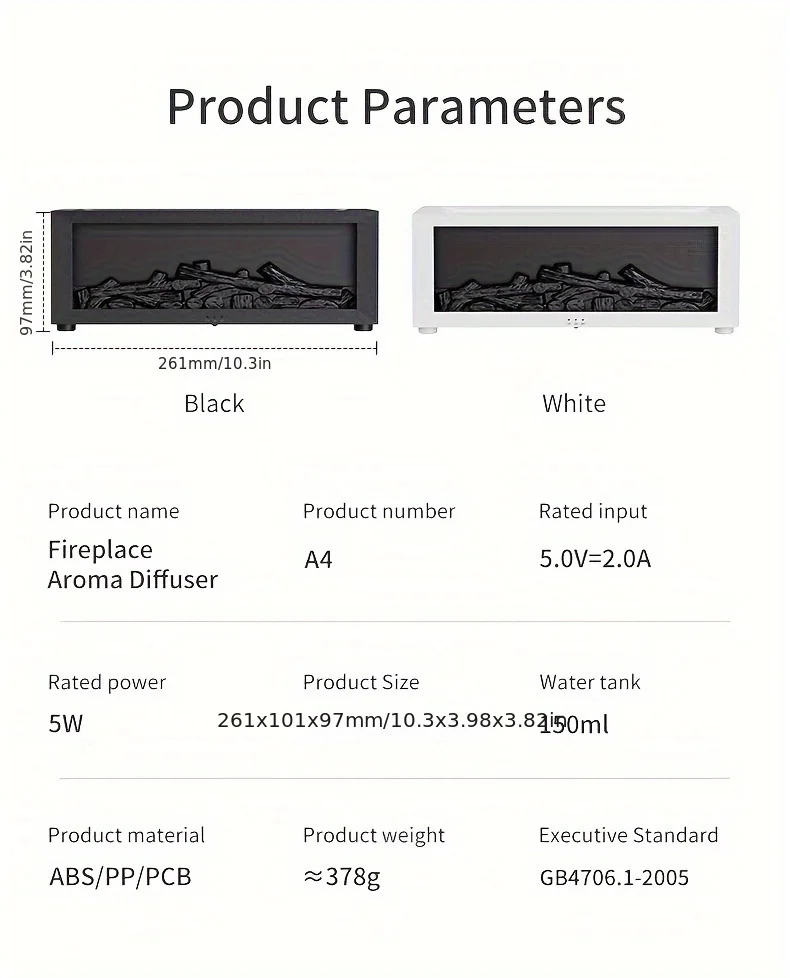 Simulated fireplace flame screen design: creates a realistic flame effect, as if a warm flame is burning right in front, not only enhancing the visual experience but also adding a touch of warmth and comfort to the room. Whether used in the home, office, or bedroom, this humidifier brings a unique atmosphere to the environment while keeping the air moisturized.